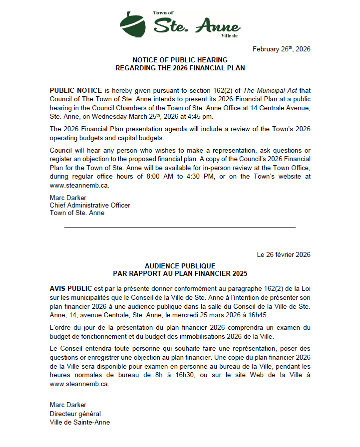 2026 Financial Plan Public Hearing Notice Friday, February 27, 2026 at 11:00 AM DRAFT 2026 Financial Plan